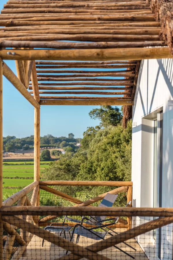 Nas florestas de pinheiros nos arredores de Carvalhal, o Ando Living Comporta House apresenta um conceito exclusivo de villas com serviços. O hotel oferece 16 villas com dois a cinco quartos, todas com piscina privativa, terraço e jardim, além de arquitetura que privilegia materiais naturais e integração com o entorno. Entre os serviços estão concierge, chef sob demanda e lounge bar, refletindo o conceito de “vida estilo resort” na costa alentejana.