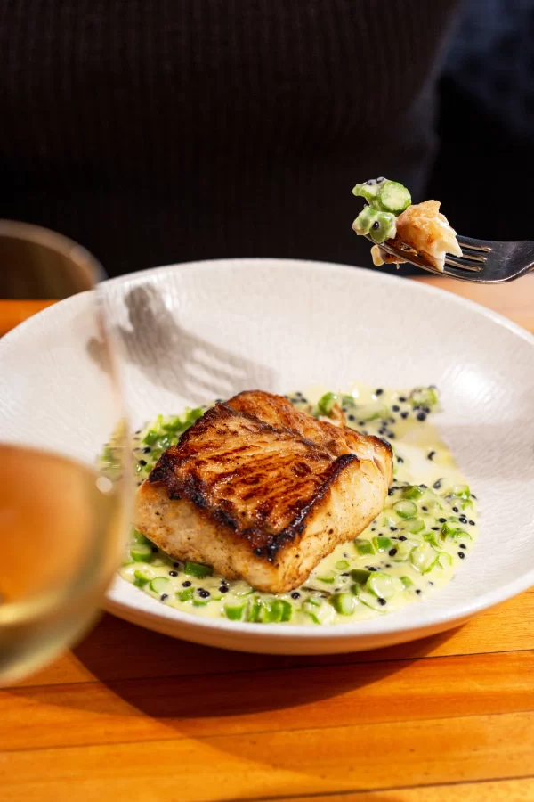 À frente da cozinha, Bruno Barros — com passagens pelo restaurante de Gordon Ramsay, em Londres, e pelo Dalva e Dito, do chef Alex Atala — imprime sua leitura da culinária mediterrânea, equilibrando ingredientes e texturas em combinações autorais.