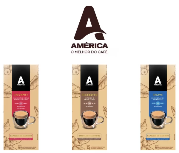 O Café América está lançando sua linha de cápsulas em novas embalagens nas versões Ristretto, Gourmet e Suave para proporcionar mais praticidade e oferecer ao consumidor seus cafés em cápsulas de alumínio para preservar o sabor e manter a qualidade do bebida com uma proposta sustentável.