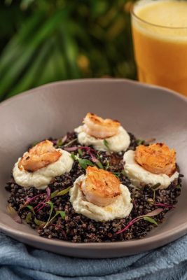 Também são novatos o Fresh Tuna– Atum fresco selado com flor de sal, servido com homus de beterraba, salada de alface, rúcula, repolho roxo, tomate cereja e queijo minas; o Camarões no Mar Negro – Camarões grelhados sobre arroz negro com quinoa e finalização com creme de búfala.