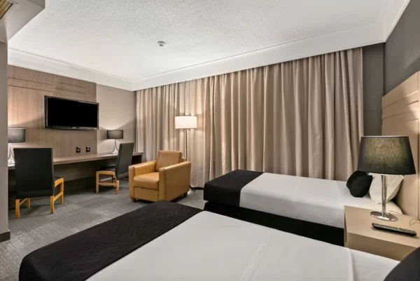 Já o Slaviero Hotel Guarulhos Aeroporto oferece infraestrutura completa com piscina, sauna e academia. A unidade também possui transfer gratuito e o pacote “Estacione e Voe”, que oferece uma diária antes ou depois da viagem e sete dias de estacionamento.