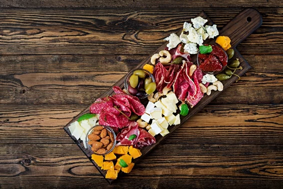 Já os queijos podem variar entre os suaves como muçarela, brie, gouda e queijo minas, os médios, como o provolone, e os fortes, como gorgonzola e parmesão. Outra dica é cortar os frios em diferentes formatos, para dar um movimento visual e deixar a tábua mais atrativa.