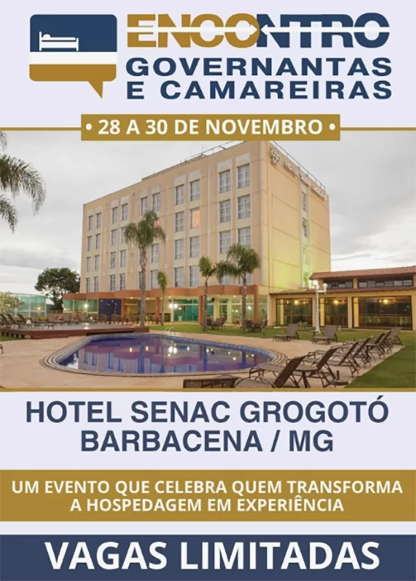 A cidade de Barbacena, em Minas Gerais, localizada na Serra da Mantiqueira, será sede da 2ª edição do Encontro de Camareiras e Governantas, que acontecerá de 28 a 30 de novembro no Hotel Escola Senac Grogotó. A primeira edição do evento foi realizada no mesmo hotel em 2019.