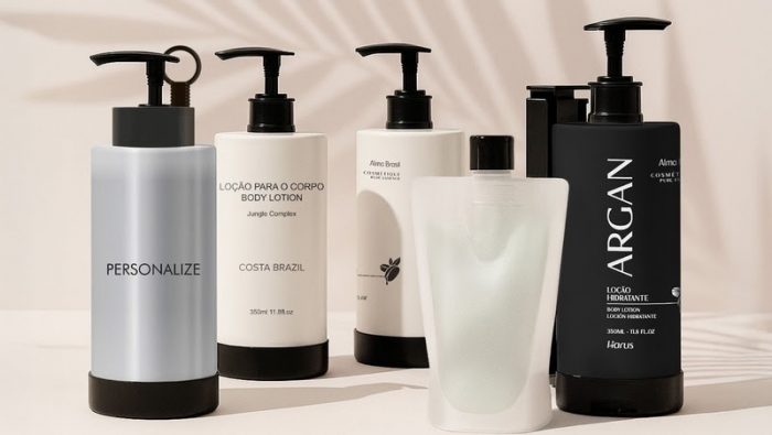 As opções em porcelana e alumínio estão disponíveis para as linhas próprias, como Alma Brasil, Momento Bem-Estar e Harus, e de marcas parceiras L’Occitane, Avatim, Santapele e Costa Brazil, para amenities como shampoo, condicionador, sabonete líquido e loção hidratante, em frascos de 350 ml.