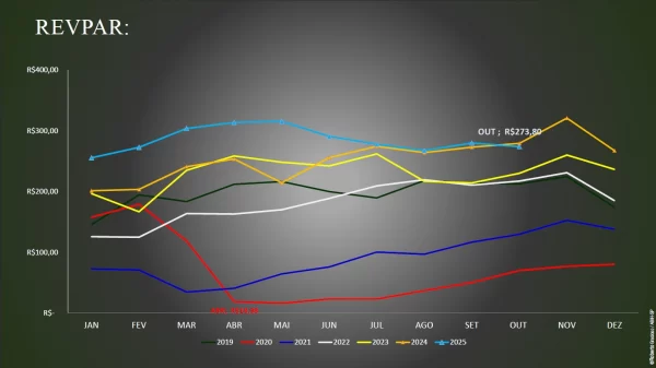 Ocupação média em outubro em 2025 mantém estabilidade, apesar de leve retração em indicadores de receita