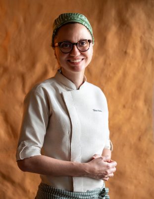 A paixão por pães de fermentação natural, molhos clássicos, fogo de chão e comida feita em panela de ferro compõe a assinatura da chef, que aposta na combinação entre técnica refinada e afetividade acessível. “Fazer comida simples ser impactante é a minha força. Não tenho medo de servir um bife acebolado em um grande evento, como já aconteceu, se for feito com amor e intenção”, conta.