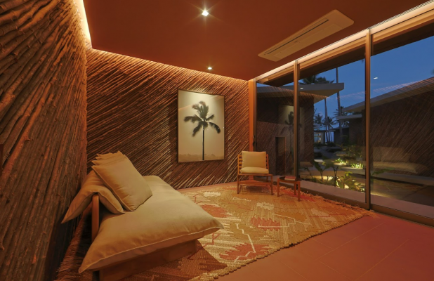 Com direção criativa de Juliana Pippi e arquitetura do alagoano Rodrigo Fagá, o hotel expressa o encontro entre a estética contemporânea do Sul e a essência calorosa do Nordeste. Cada uma das dez cabanas reflete o propósito do design afetivo, onde o conforto se alia à natureza: piscinas aquecidas com hidromassagem, mobiliário autoral e obras de arte se unem a texturas e materiais naturais, transformando o feito à mão em linguagem de acolhimento.