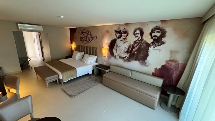 Toda a decoração do hotel homenageia artistas icônicos nos quartos e espaços comuns.