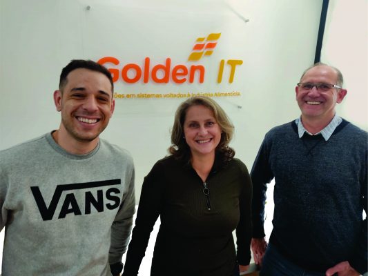 Diego Beneck, Angélica e Áureo Bordignon, da Golden IT: empresa disponibiliza ERP ao mercado brasileiro.
