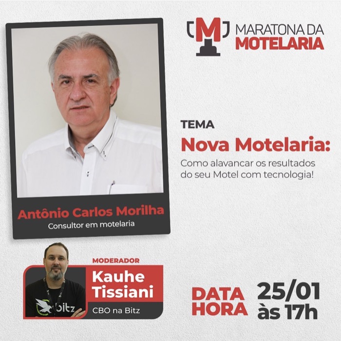 O evento contará com o Consultor em motelaria Antonio Carlos Morilha e terá a moderação de Kauhe Tissiani – CBO na Bitz.