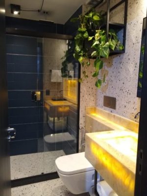 O banheiro pronto é um sistema tecnológico de construção que surge como uma solução inovadora e, vem demonstrando resultados otimistas sob a ótica construtiva. Pode ser feito em concreto armado ou drywall, o que reduz a necessidade de intervenções estruturais, ou de forma mista em casos especiais.