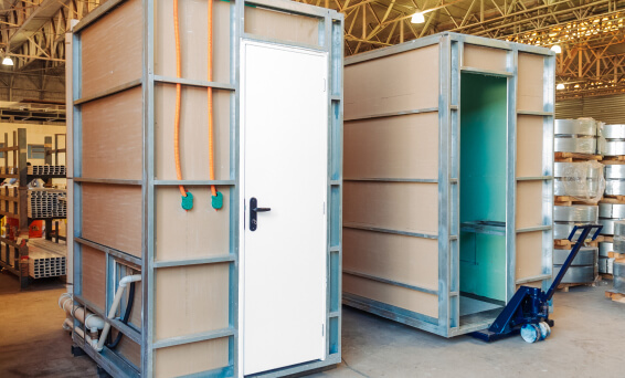 Na fábrica são realizadas todas as etapas de controle de materiais, acabamentos, instalações e controle de qualidade, desde a recepção de materiais, mobiliário, confecção de paredes, acoplamento de estruturas e acabamento até a entrega final.