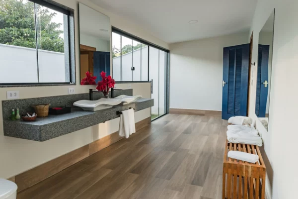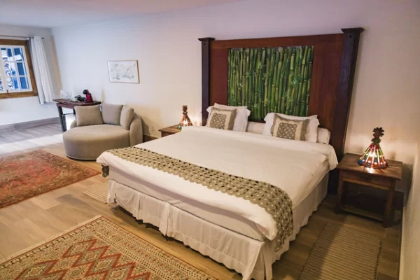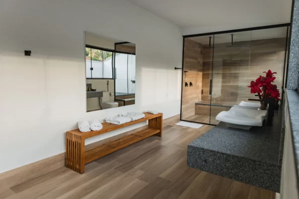 As suítes Real Plus representam a categoria mais exclusiva de hospedagem do resort, oferecendo uma experiência diferenciada para hóspedes que buscam maior privacidade e conforto. Cada unidade conta com hidromassagem externa, sauna privativa e jardim interno, criando um ambiente de relaxamento integrado à natureza.