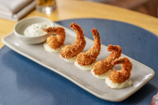 O cardápio reúne preparações que transitam entre frutos do mar, carnes e receitas da culinária contemporânea. Entre os pratos estão opções como Camarão com Coco, Bacalhau com Polenta, Cupim com Macaxeira e Mignon com Texturas de Batatas. A carta inclui ainda entradas, massas, parrilhas, risotos, saladas, crudos, acompanhamentos, sobremesas, bebidas e drinks.